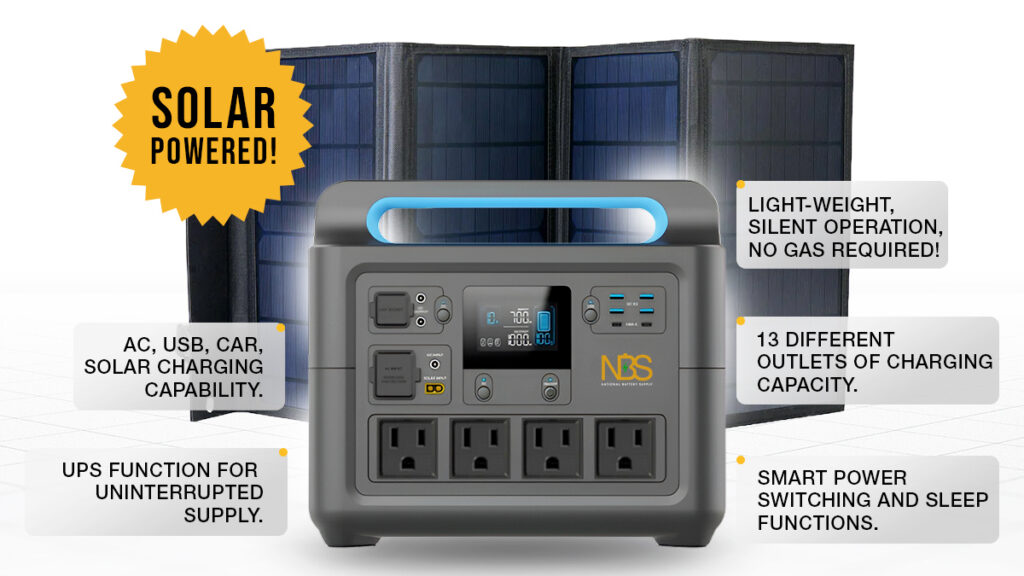 Stay prepared and powered up with the Portable Power Ally from National Battery Supply, your ultimate on-the-go power solution. Designed for durability and ease of use, this compact, solar-compatible power station is built to provide reliable energy for all your essential devices in any situation—whether it’s an emergency, an outdoor adventure, or simply a need for portable power on demand.