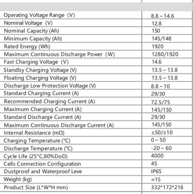 - Ultra-high capacity (150Ah) for extended runtime in demanding systems