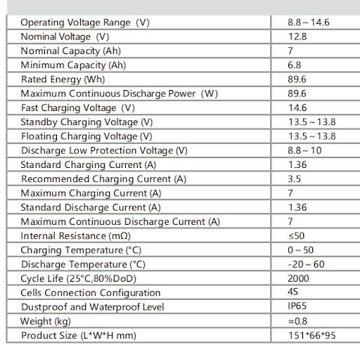 - Nominal Capacity: 7Ah